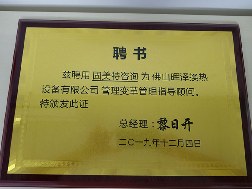 佛山暉澤換熱設(shè)備公司聘書